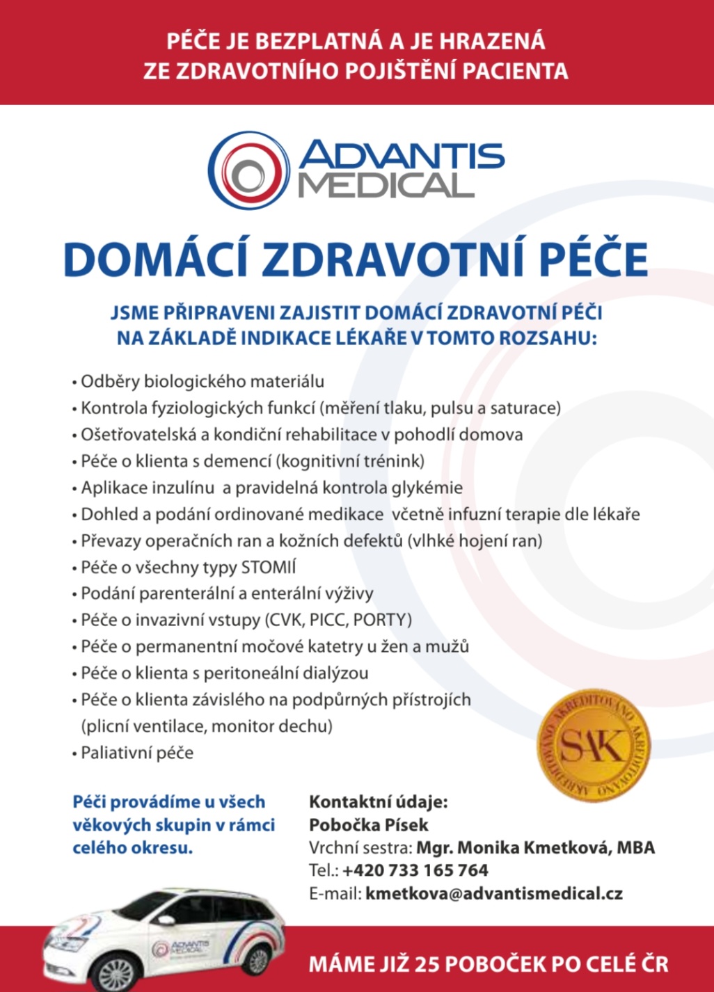 Advantis Medical - pobočka Písek - bezplatná péče hrazená ze zdravotního pojištění
